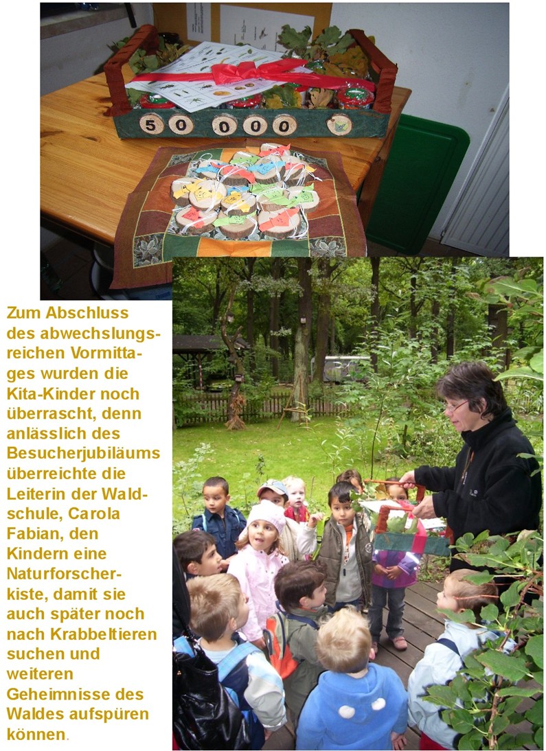 Die Waldschule im Plänterwald empfängt im Jahr des 10-jährigen Bestehens seinen 50000sten Besucher Dienstag, 16.09.2008 -10.00 Uhr